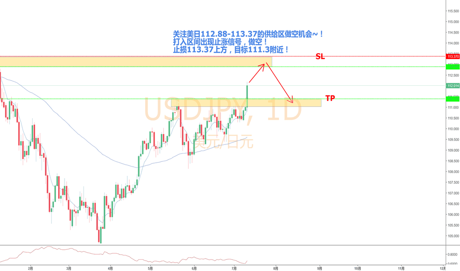 美日 - 已到达反转区,等待止涨信号进空美元这次的上涨已到达了一个转捩点。