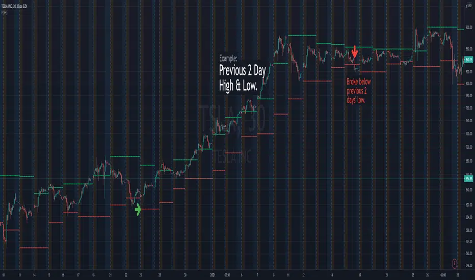 Added lines for future: During session, uses current day's high and low and eliminates the first day in the calculation to predict what the high and low will be. When the session has finished, displays the current values as how they will be plotted in the next session.开源脚本
