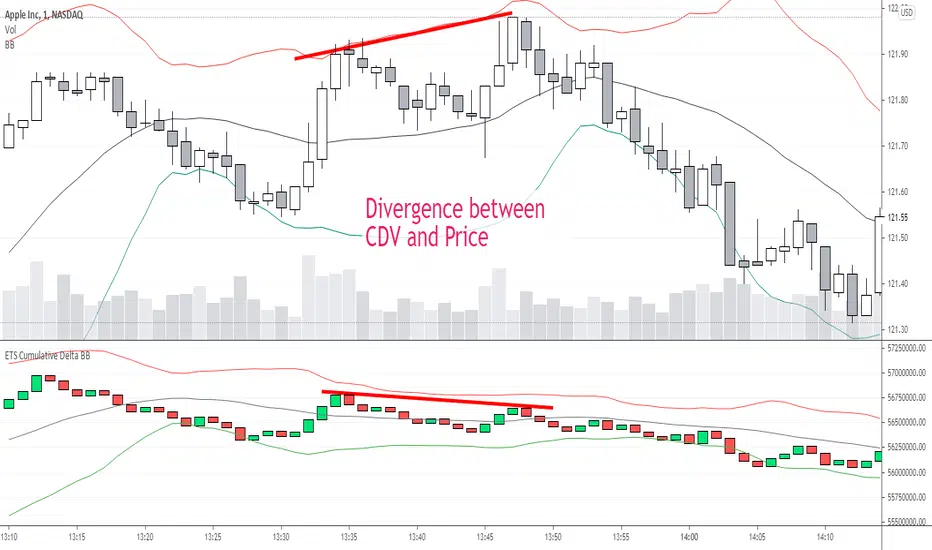 This script is based on the work originally done by kprsa for the Monster Cumulative Delta indicator, but adds Bollinger Bands and upgrades it to version 4 from version 1.