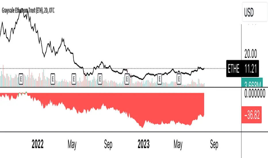 The provided script calculates the discount or premium of the Grayscale Ethereum Trust (ETHE) to its Net Asset Value (NAV), considering an annual fee of 2.5%. It does this by comparing the ETHE's price to the underlying Ethereum (ETH) value per share, adjusting for the effect of the annual fee.