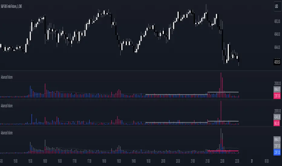 The "Advanced Volume" indicator is a versatile tool designed for traders who need a detailed analysis of market volume dynamics. It provides three unique modes of volume analysis: Simple, Complex, and Analytics, each offering distinct insights for various trading styles.