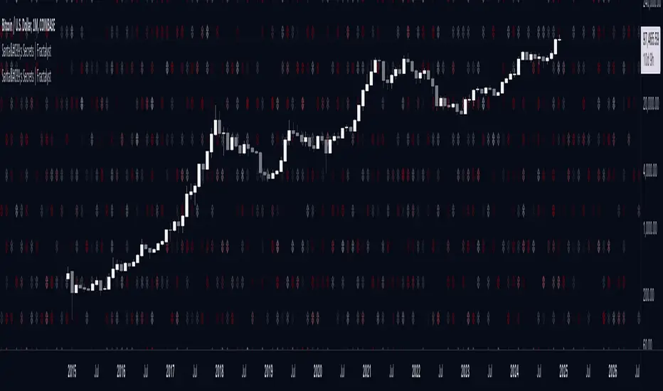 The indicator brings a magical touch to your charts, featuring characters from classic holiday themes (e.g., Santa, reindeer, snowflakes, gift boxes) to create a fun and festive “glitch effect.” Users can select a theme for their matrix characters, adding a holiday twist to their trading visuals. As the market data moves, these themed characters are randomly picked and displayed on the chart in a colorful cascade.