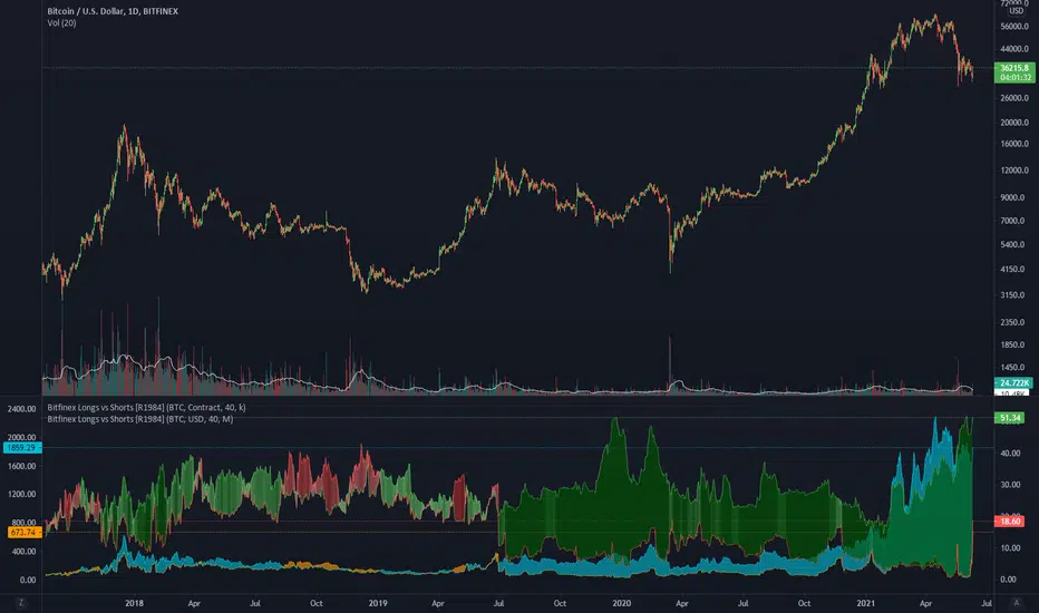This indicator compares open BTCUSD Bitfinex long versus short positions.