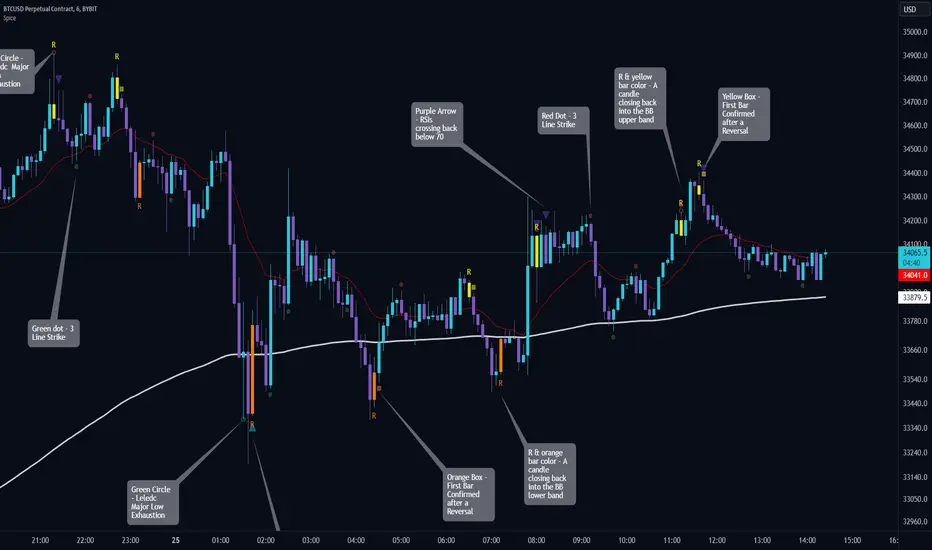 Thanks to Lij_MC's MarketVision A indicator for inspiring me to add more features. At first it was just the RSI Arrows and the BB reversals candles + Condition but then I found MarketVision A and loved the extra Leledc and 3 Line Strike features.