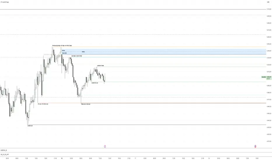 ICT Levels & Gaps displays key ICT reference levels directly on your chart — fully configurable and designed for clean, distraction-free price action analysis.