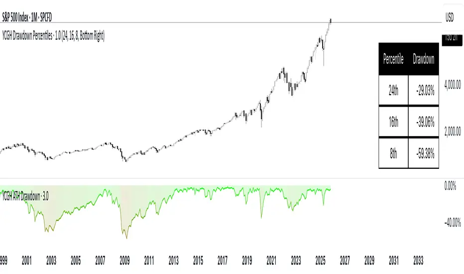 The indicator continuously tracks and calculates the percentage decline from the all-time high (ATH) using a systematic approach.