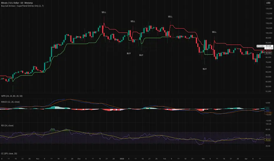 No position between signals Stay in cash — no calls open during red SuperTrend phases