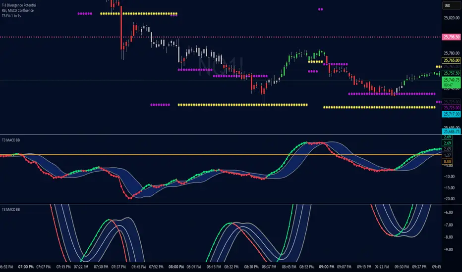 Smoothes the MACD with a special T3 filter, turning the raw MACD into a smoother line so short‑term noise is reduced.