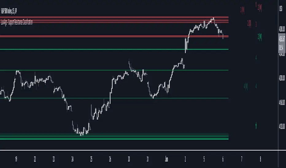 This indicator doesn't use visible range functionality, in contrast to our Support Resistance Classification (VR) [LuxAlgo] indicator, it uses a set lookback period to find support/resistance levels.