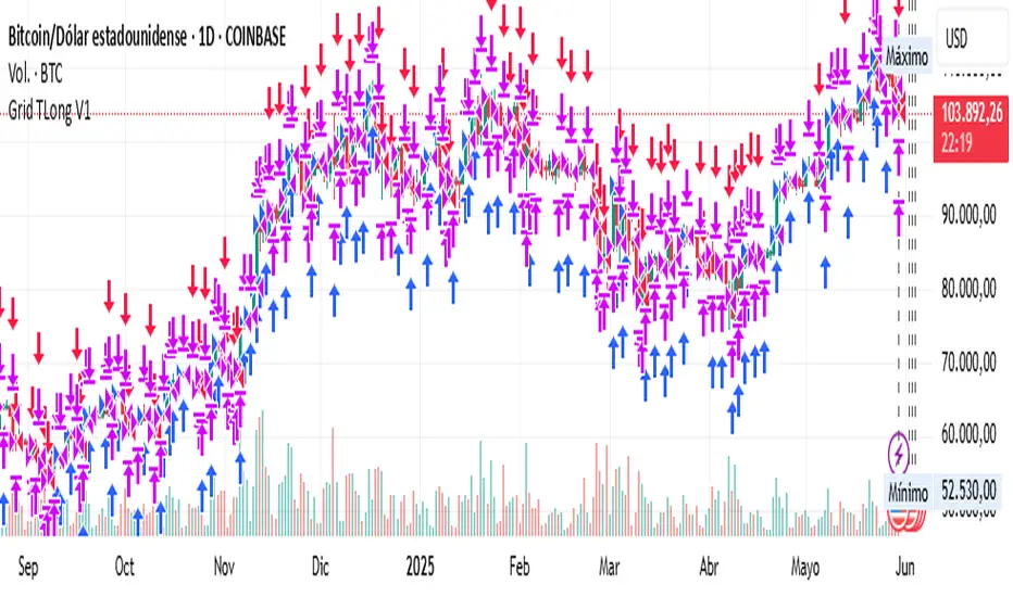 The “Grid TLong V1” strategy is based on the classic Grid strategy, but in the mode of buying and selling in favor of the trend and only on Long. This allows to take advantage of large uptrend movements to maximize profits in bull markets. For this reason, excessively sideways or bearish markets may not be very conducive to this strategy.