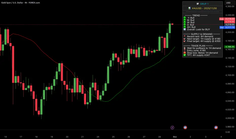 • TREND - Multi-timeframe trend analysis (Yearly to 4H) with bull/bear icons