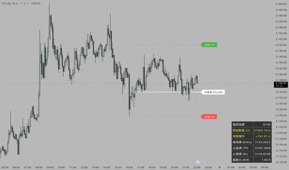 自動計算倉位 (Position Size): 輸入您的止損金額 (如 100 U),指標會自動算出該開多少倉位,精準控制風險。