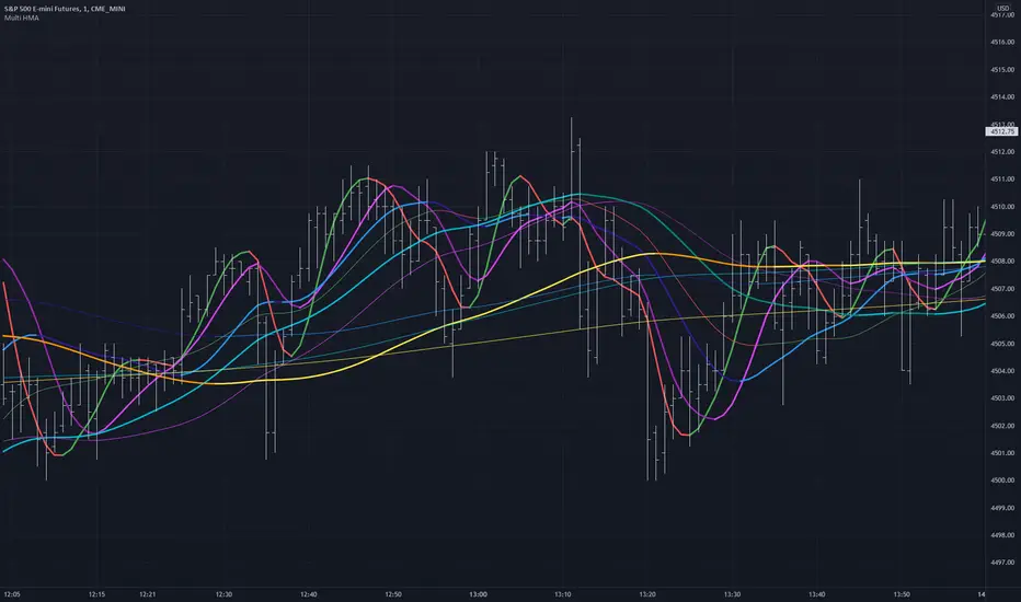 This indicator was requested and written for a study to replace multiple SMA's with Hull MAs to compare accuracy as the Hull has much less lag.