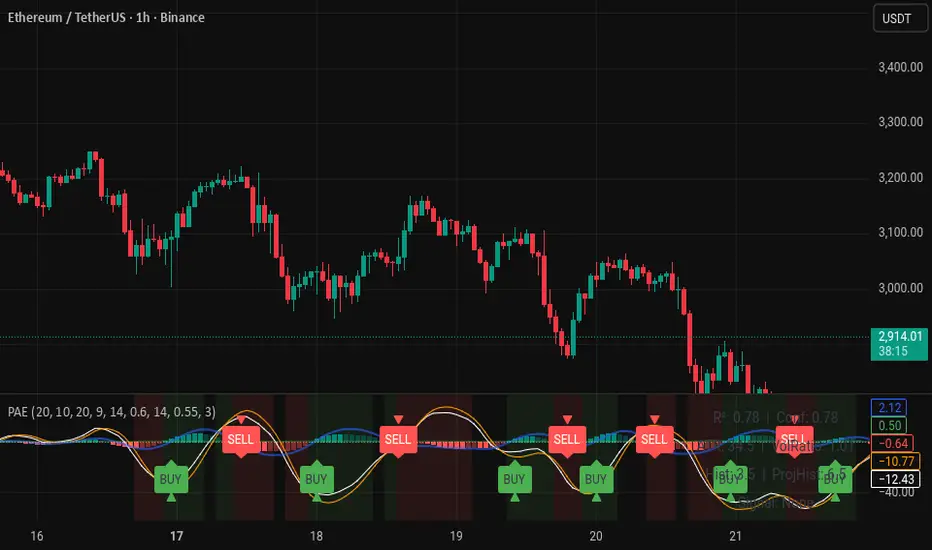 BUY/SELL signals are generated from the projected histogram crossover.