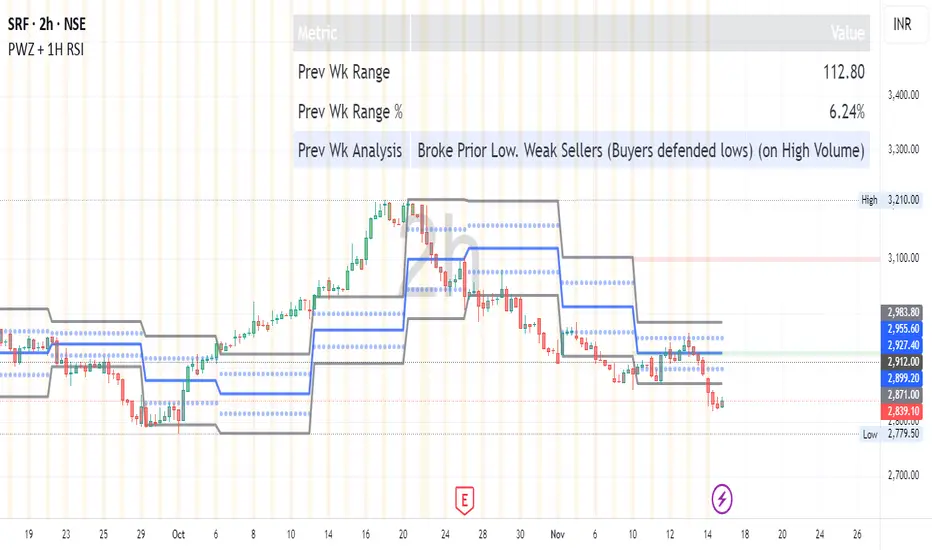 The Weekly levels (PWH, PWL, 4 quadrants).