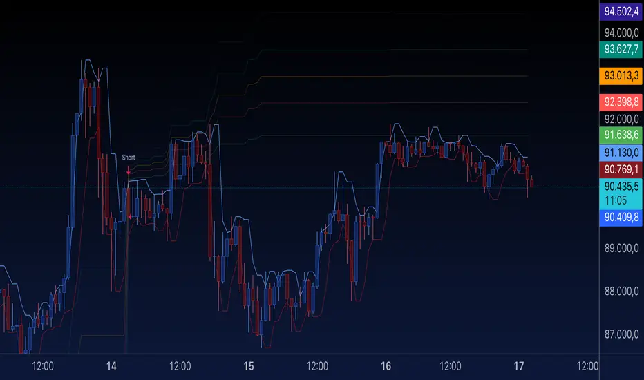 Plots six customizable Fibonacci levels with distinct colors and transparency.