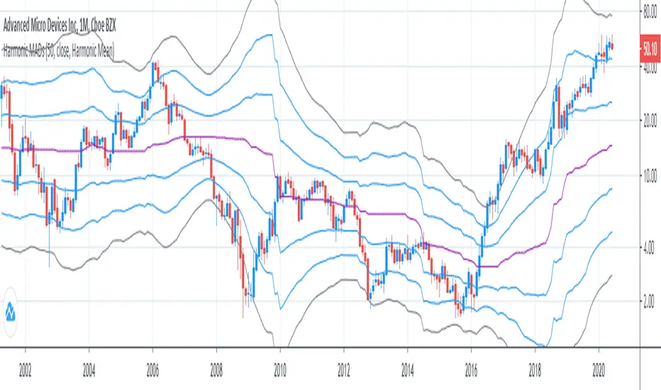 In my previous research I tried to develop "Harmonic Average Deviations", since applying stdevs on Harmonic Mean calculated from reciprocals ain't make sense. Din't work out, prolly cuz by definition stdevs doesn't like negatives. So in the end I ended up using Mean Average Deviations, and turned out it works great. Generally market data doesn't distribute normally, so t's a great tool, now weird kurtosis won't be a problem.