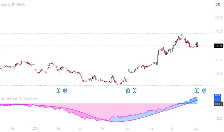 The volatility adjusted relative strength indicator offers a more precise approach to traditional RS indicators by incorporating volatility adjustments into its calculations. This will provide traders with a more nuanced view of relative performance between a selected instrument and a comparison index.