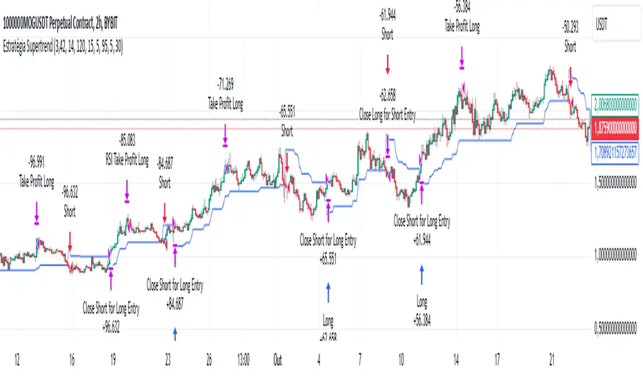 The Supertrend Strategy was created based on the Supertrend and Relative Strength Index (RSI) indicators, widely respected tools in technical analysis. This strategy combines these two indicators to capture market trends with precision and reliability, looking for optimizing exit levels at oversold or overbought price levels.
