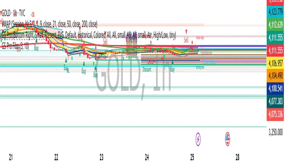 Automatically draws dynamic Fibonacci retracement levels based on latest zigzag swings with auto zones (TP/Entry/SL). Designed for Gold Station – GS Pro community.