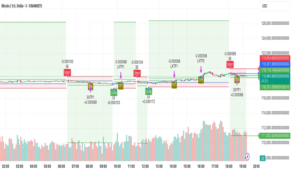Precise Entry Points: Entry signals are generated when strict confluence conditions are met, ensuring signals align with underlying market structure, high-volume footprints, and optimal momentum. Stops are logically placed just beyond the validated support or resistance—on the opposite side of the key zone.