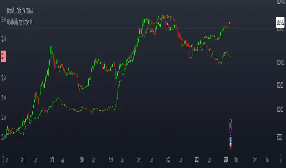 The "Global Liquidity Index (Candles)" script, compared to the original "Global Liquidity Index" script, offers a more detailed and visually rich representation of liquidity data.