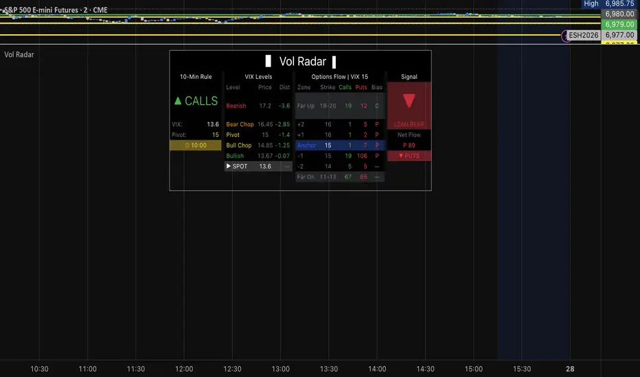 This script will display a status overview of volatility as measured by VIX. It requires real-time OPRA data for full functionality.