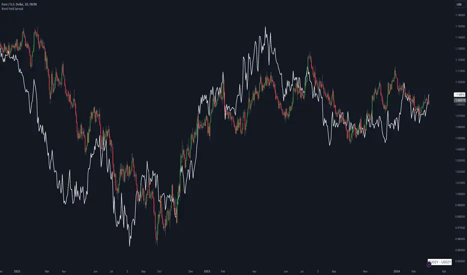 The Bond Yield Spread Script is developed for forex traders, offering an automated tool to calculate the bond yield spread between two countries associated with the forex pair displayed on the chart.