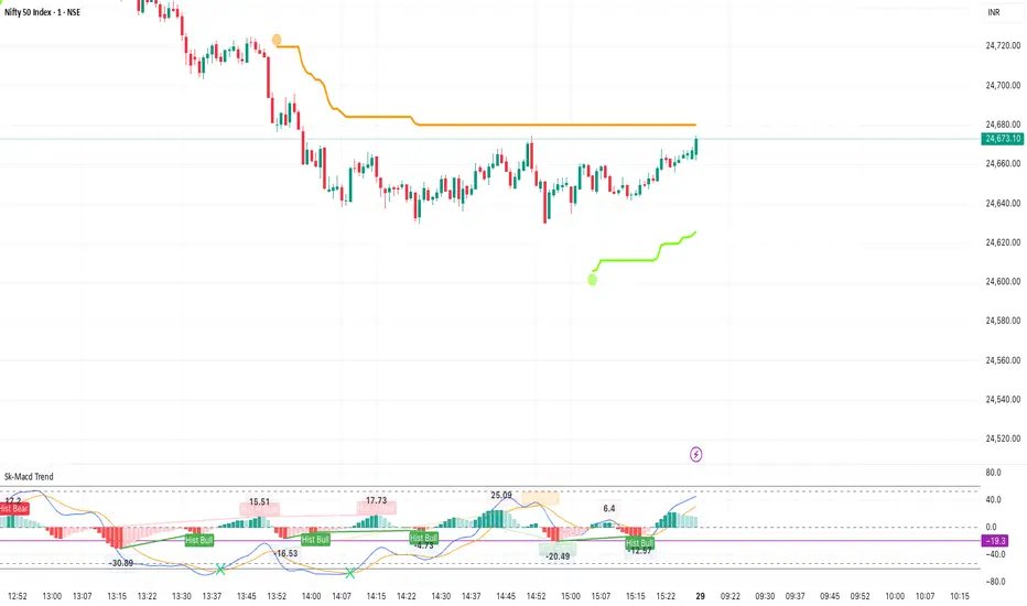 Publication Note for "Sk Macd Trend" IndicatorWe are excited to announce the release of the "Sk Macd Trend" indicator, a robust and versatile tool designed for traders to identify market trends, momentum, and potential reversal points. This indicator, developed by Sujeetjeet1705, is licensed under the Mozilla Public License 2.0 (mozilla.org/MPL/2.0/).Key Features:Wave Trend Oscillator:Customizable channel length, average length, and overbought/oversold levels.