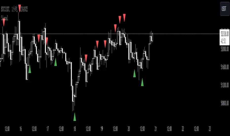 This custom TradingView indicator, named "Signal," is designed to generate buy and sell signals based on the Stochastic Oscillator, a momentum indicator that compares a particular closing price of an asset to a range of its prices over a certain period of time. The indicator is set to overlay on the price chart, providing visual cues for potential trading opportunities.
