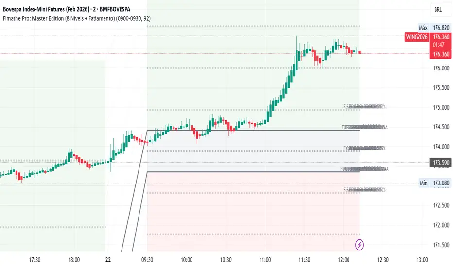 Session: Default is set to 0900-0930 (First 30 min). If you trade the Classic Fimathe (1 hour), simply change it in the settings to 0900-1000.