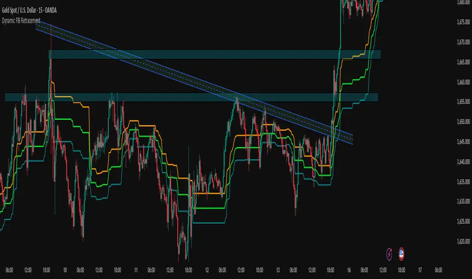 Dynamic Fibonacci Levels – Automatically calculates 0.382, 0.5, and 0.618 retracements based on recent price action.