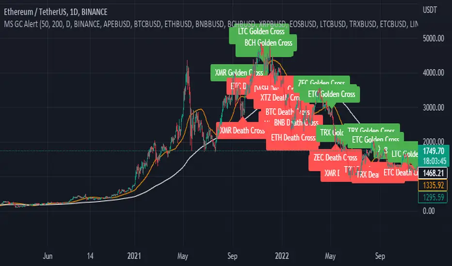By using the built-in request.security function, this template fetches data for your chosen symbols from the selected exchange and calculates the conditions (e.g., moving average crossovers) for each symbol. Although the current implementation focuses on Golden Crosses and Death Crosses, the sky is the limit when it comes to modifying the script to incorporate other technical indicators such as RSI, MACD, or Bollinger Bands.