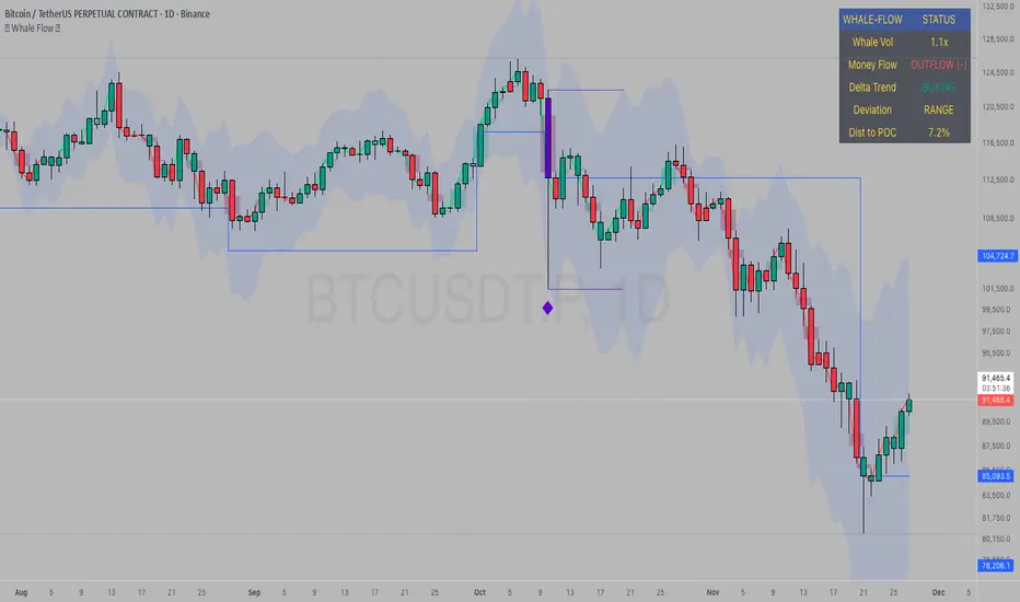 By combining Wick-Adjusted Volume pressure, Smart VWAP logic, and High-Volume Nodes (POC), this tool filters out retail noise and highlights where significant capital is entering and exiting the market.