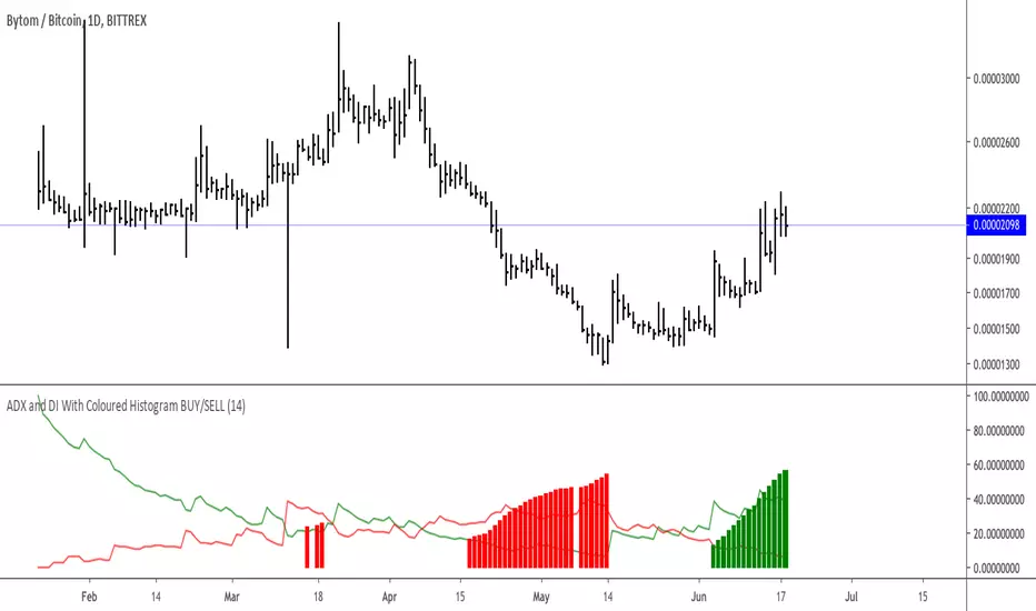 - red when ADX and DI- are higher then DI+, while the ADX is increasing, meaning that we are in a potential downtrend --> we should rather be short (only sell if you have other concordant signals !)