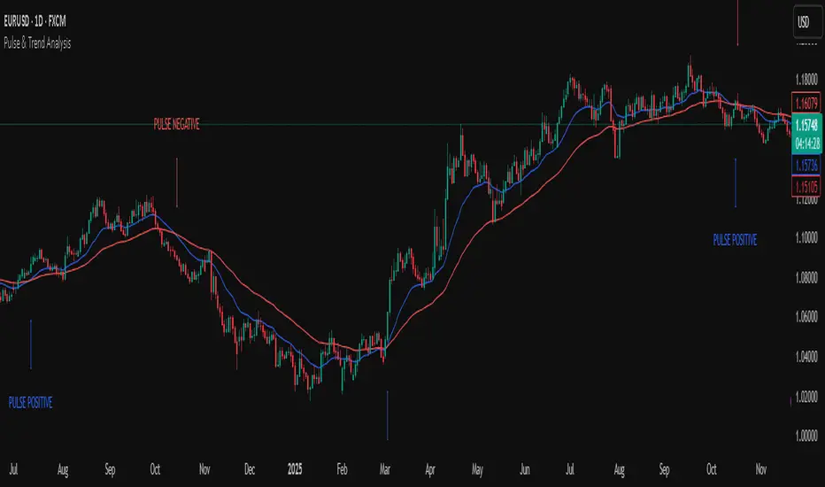 The Trend & Pulse Analysis indicator is completely original because it is built on a custom-designed logic that goes beyond a simple EMA crossover system. While standard indicators only detect crossover/crossunder of moving averages, this tool introduces a dual-filter confirmation approach: