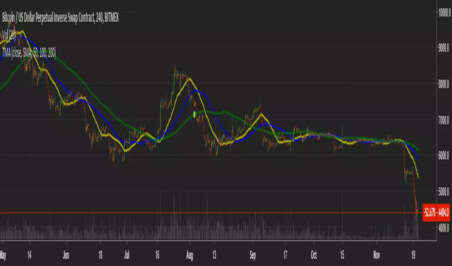 Three moving averages. Choose your type (SMA, EMA or WMA). Added option to disable individual MAs.开源脚本