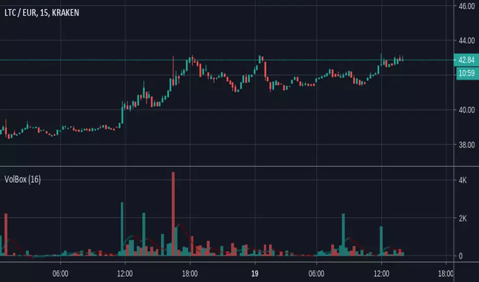 I do not like how the default volume indicator crowds my chart. So, I made this little thing just for fun. It's the bestest!