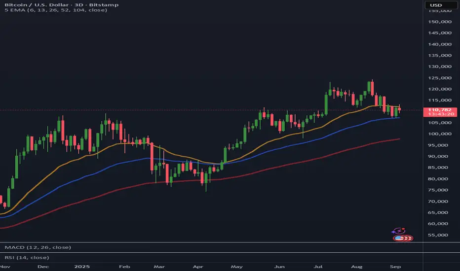 Thicker line weights for longer-term EMAs (26, 52, 104) to emphasize trend bias