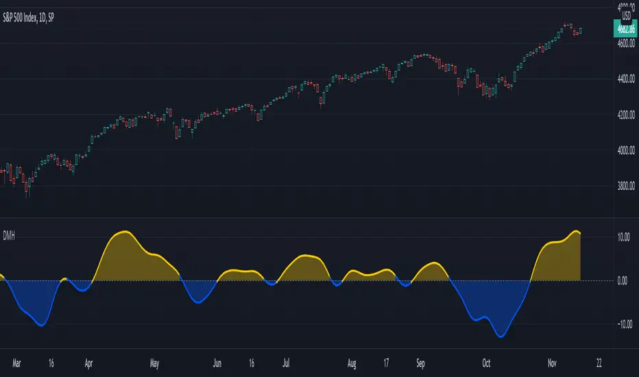 The calculation starts with the classic definition of PlusDM and MinusDM. These directional movements are summed in an exponential moving average (EMA). Then, this EMA is further smoothed in a finite impulse response (FIR) filter using Hann window coefficients over the calculation period.