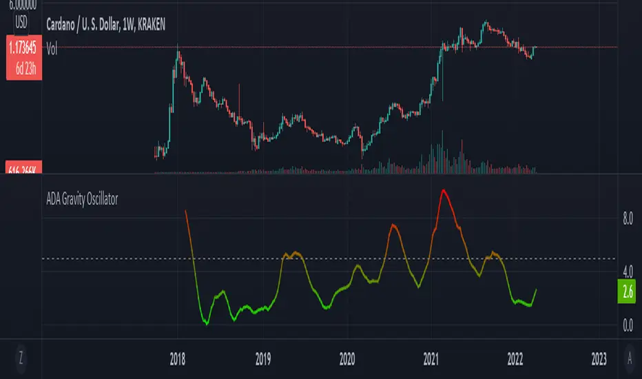 This indicator is a deviation of a Center of Gravity Oscillator corrected for the diminishing returns of Cardano (ADA).
