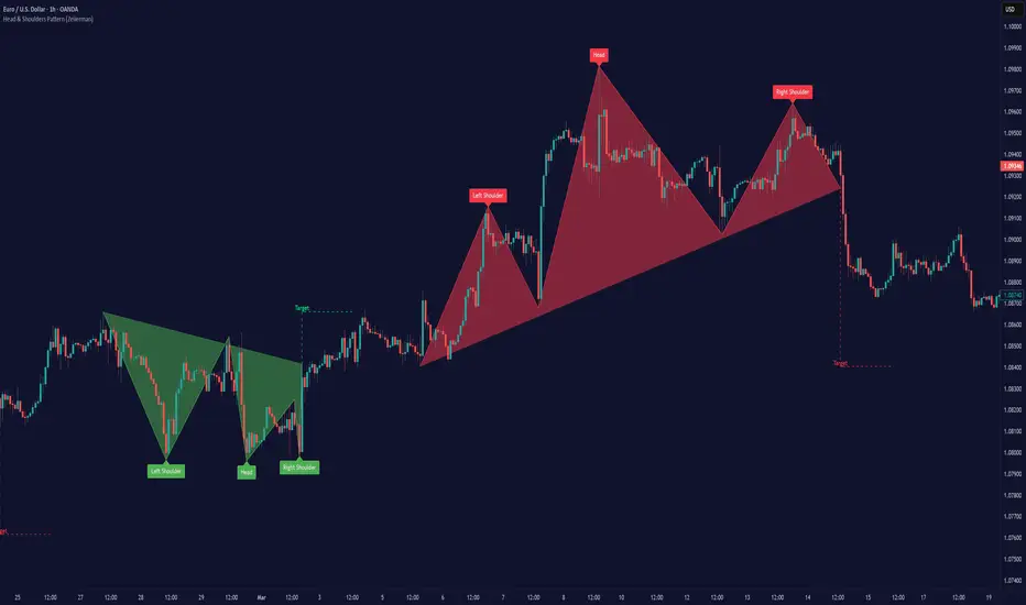 The Head & Shoulders Pattern (Zeiierman) is an advanced pattern recognition tool that automatically detects and visualizes one of the most powerful reversal patterns in technical analysis — the classic Head & Shoulders and Inverse Head & Shoulders formations.