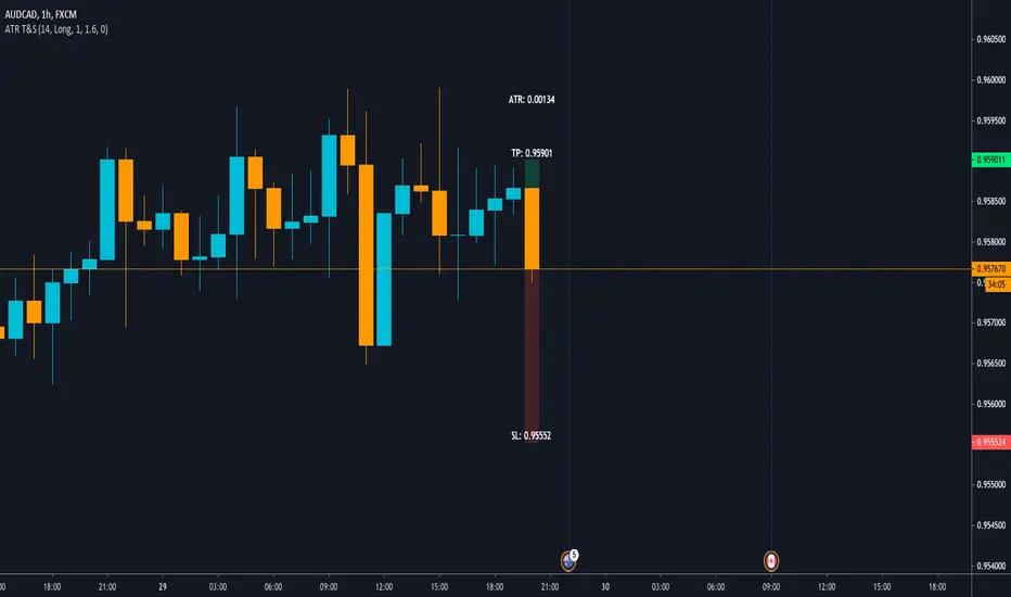 This simple indicator will plot the take profit and stop loss values based on the ATR indicator.