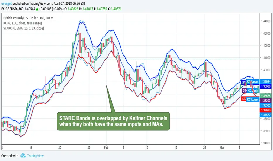 Stoller Average Range Channels (STARC) Bands indicator script. This indicator was originally developed by Manning Stoller.