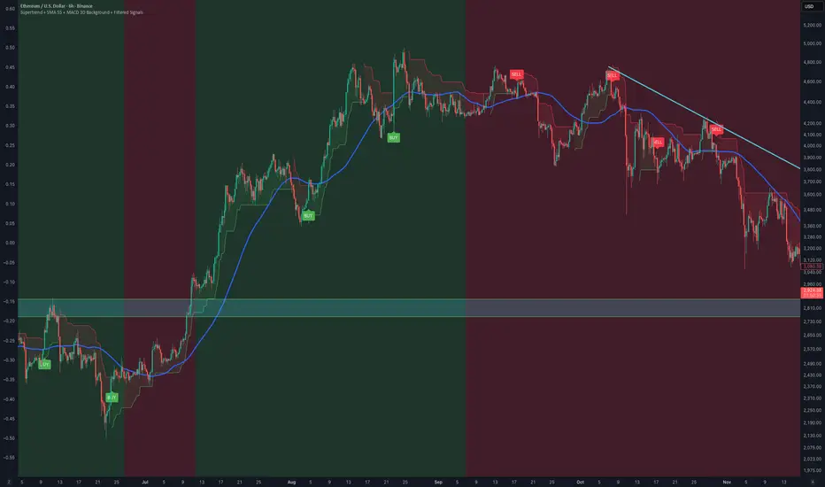 On the chart there will be 2 backgrounds showing up, green or red. The green show us that the overall trend is bullish so with this information we will go to lower timframes to check for long trades.