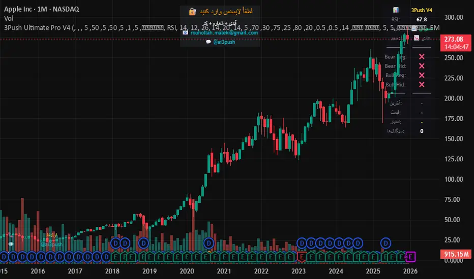 3Push Ultimate Pro V4 یک اندیکاتور حرفهای برای شناسایی الگوی قدرتمند سهپوش (3-Push) با واگراییهای عادی و مخفی است.