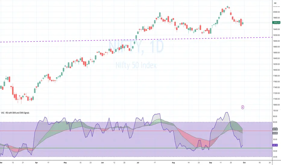 This script is used to identify potential overbought and oversold conditions in the market. It plots the VAC-RSI, SMA, and EMA on a chart, along with overbought and oversold levels, providing visual signals to the trader. When the EMA is below the SMA, it is a bullish signal, and vice versa for a bearish signal.