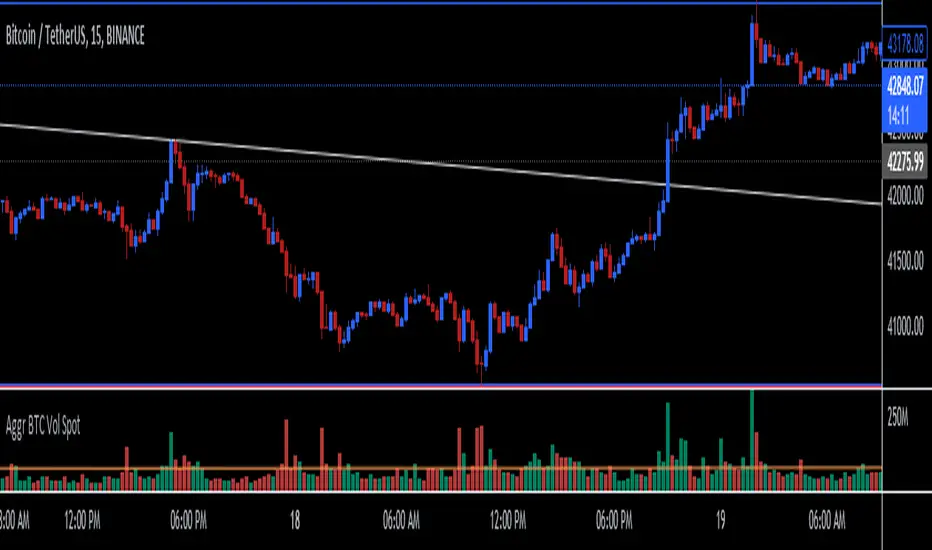 Aggregate BTC Volume indicator show aggregates trading volumes of Bitcoin from multiple trading platforms.