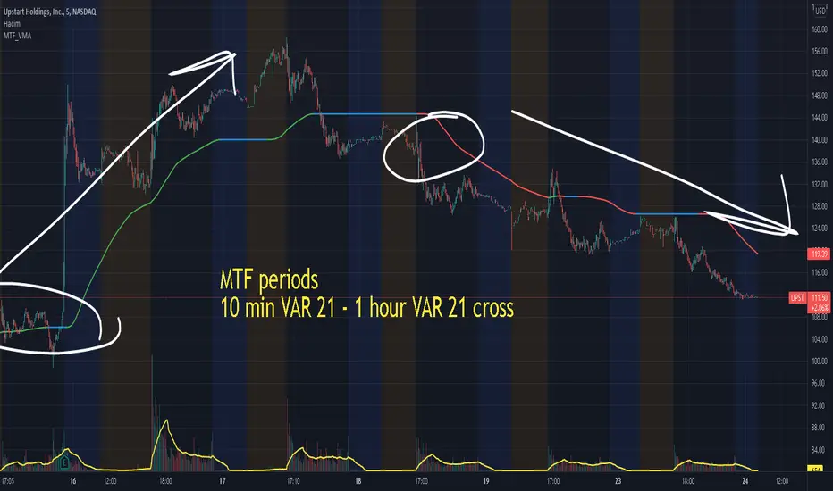 Use VMA like other Moving Averages. This indicator lazybear's variable moving average has been upgraded and arranged in multi-time frame.