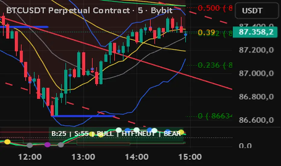 Nuh's Stochastic + Structure 1.0 is an advanced momentum–structure fusion indicator designed to identify high-probability reversal and continuation zones using a multi-layer confirmation engine. The script combines enhanced Stochastic analysis, market structure detection (HH/HL/LH/LL), divergence tracking, volume spikes, higher-timeframe trend alignment, and extreme-duration filters to deliver highly reliable buy/sell signals. Each signal is dynamically scored for strength, and a compact one-line trend panel provides real-time market state at a glance. Colors and visual elements follow a clear and intuitive hierarchy optimized for fast decision-making. Ideal for crypto, indices, and forex traders who want precision entries with minimal noise.